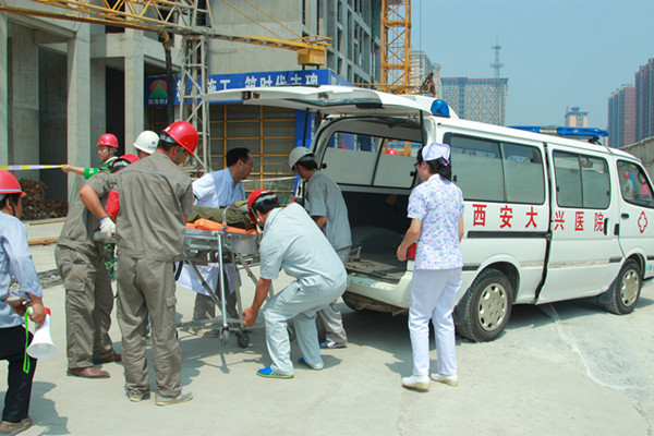 根據公司“安全生產月”總體安排部署,6月25日下午,由公司生產運行部主辦的施工現場救援演練觀摩會在第三工程公司大興•公園府邸項目隆重舉行。公司主要領導、西勘院安全處負責人、甲方、監理代表以及機關職能部門、各工程公司、分公司、項目部相關負責人近百人參加了此次觀摩活動。公司生產運行部與項目部人員、西安大興醫院、勞務公司等單位聯合組成參演隊伍,給前來觀摩的建筑行業廣大干部職工上了一堂精彩的安全教育課。