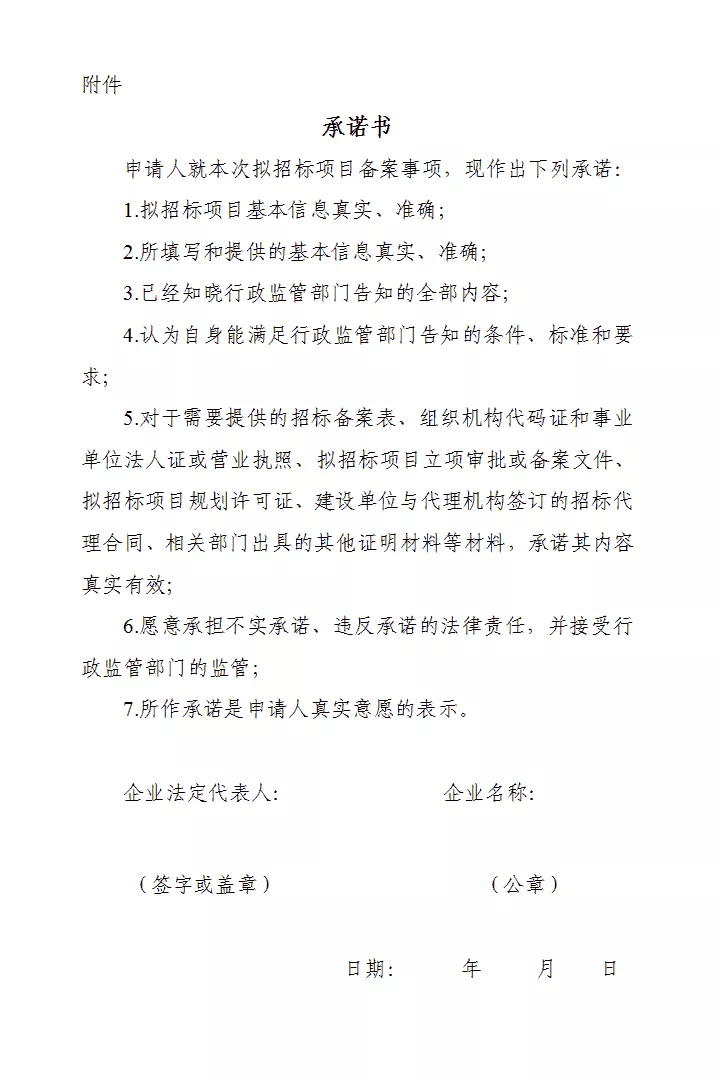 ● 應當按照告知承諾書的約定,向招投標監管部門提交相關材料。作出承諾的申請人,須由法定代表人簽字,并加蓋單位公章。在“其他相關附件”中上傳簽字印鑒齊全的書面承諾書。